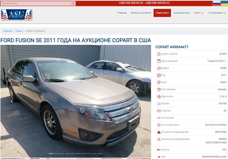 2. На 200 долларов дешевле заплатили на аукционе за Ford Fusion, выпущенный в 2011 году. Ляпов в истории авто не было, пробег подтвержденный. Работы по восстановлению некоторых элементов обойдутся в 2000 $.